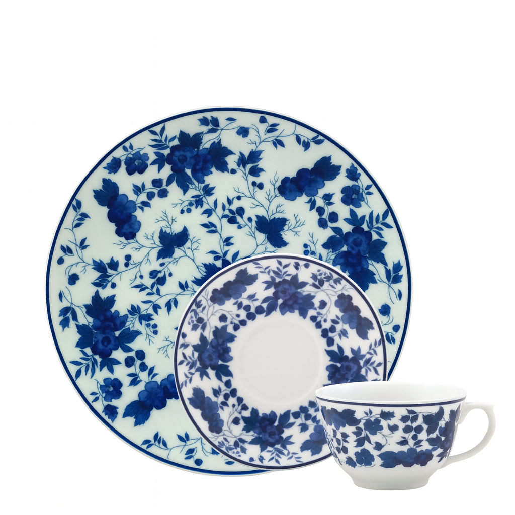 Cor, porcelana branca com estampa azul