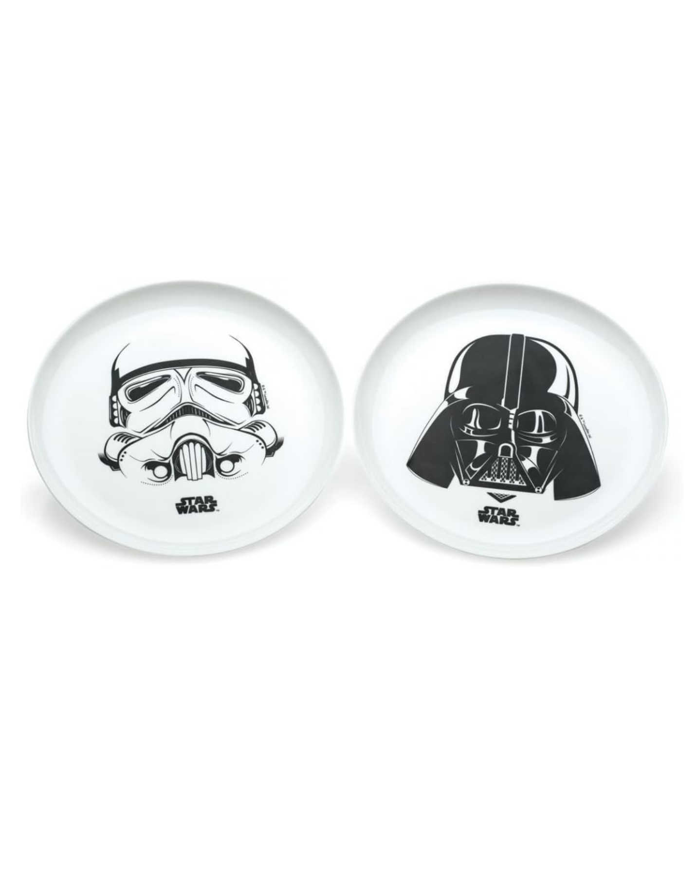 Em material resistente, nas cores preto e branco, um com estampa do Darth Vader e outro Stormtrooper, é mais animação, qualidade, alegria e charme na sua mesa.