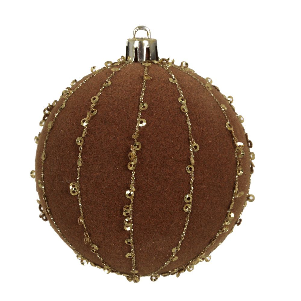 Kit c/ 04 Bola de Natal 8 cm Veludo Chocolate e Dourado D&A