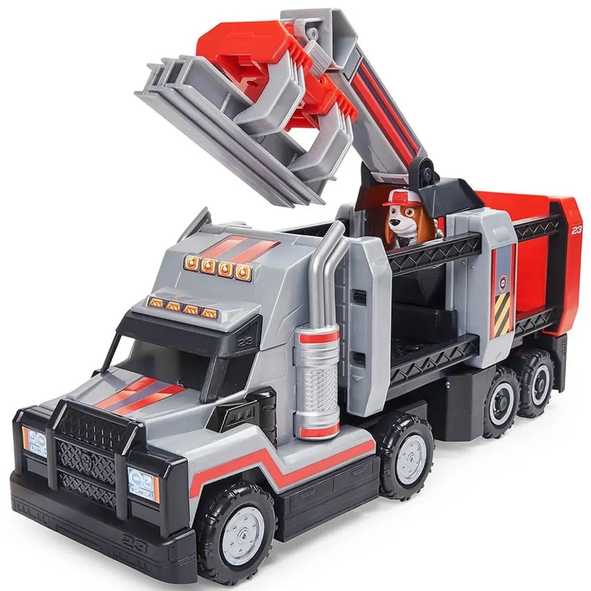 Com seu mega caminhão madeireiro em grande escala, apresentando um pod de controle ascendente com um guindaste de registro extensível e um sistema de garras de travamento, este mega-caminhão e o mais novo filhote da Patrulha Canina estão prontos para missões de resgate repletas de ação com todos os seus amigos da Patrulha Canina.