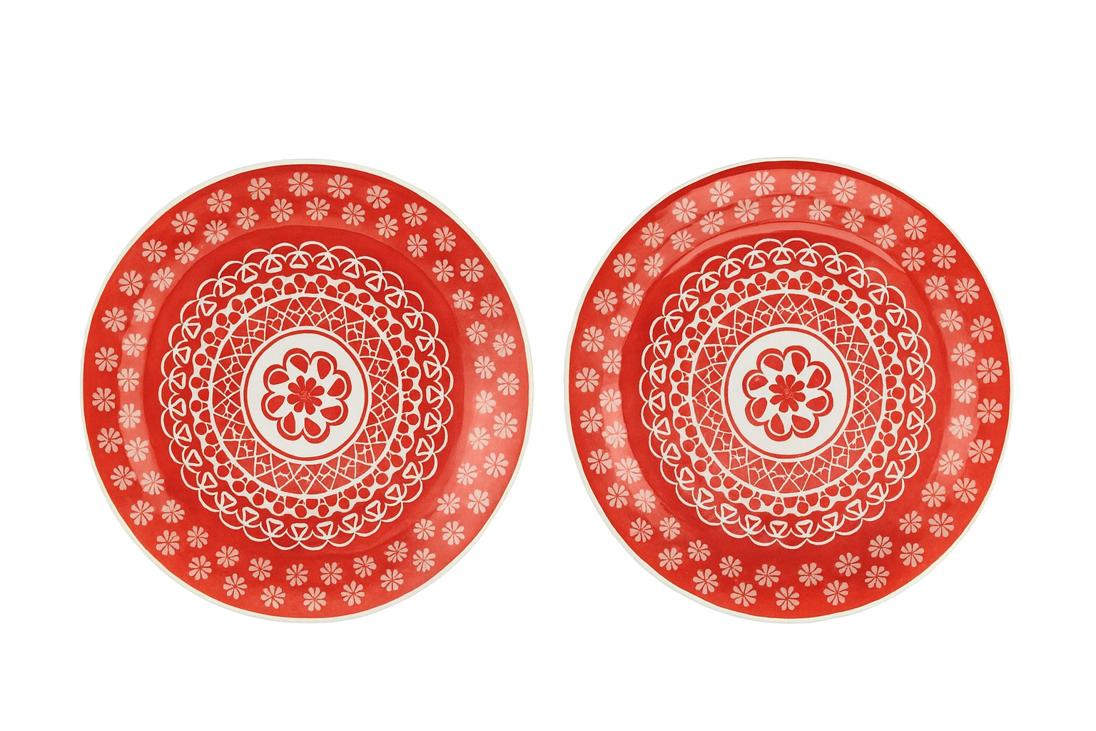 Prato Sobremesa Renda Vermelho Cerâmica 20 cm Oxford - Kit 02 Unidades