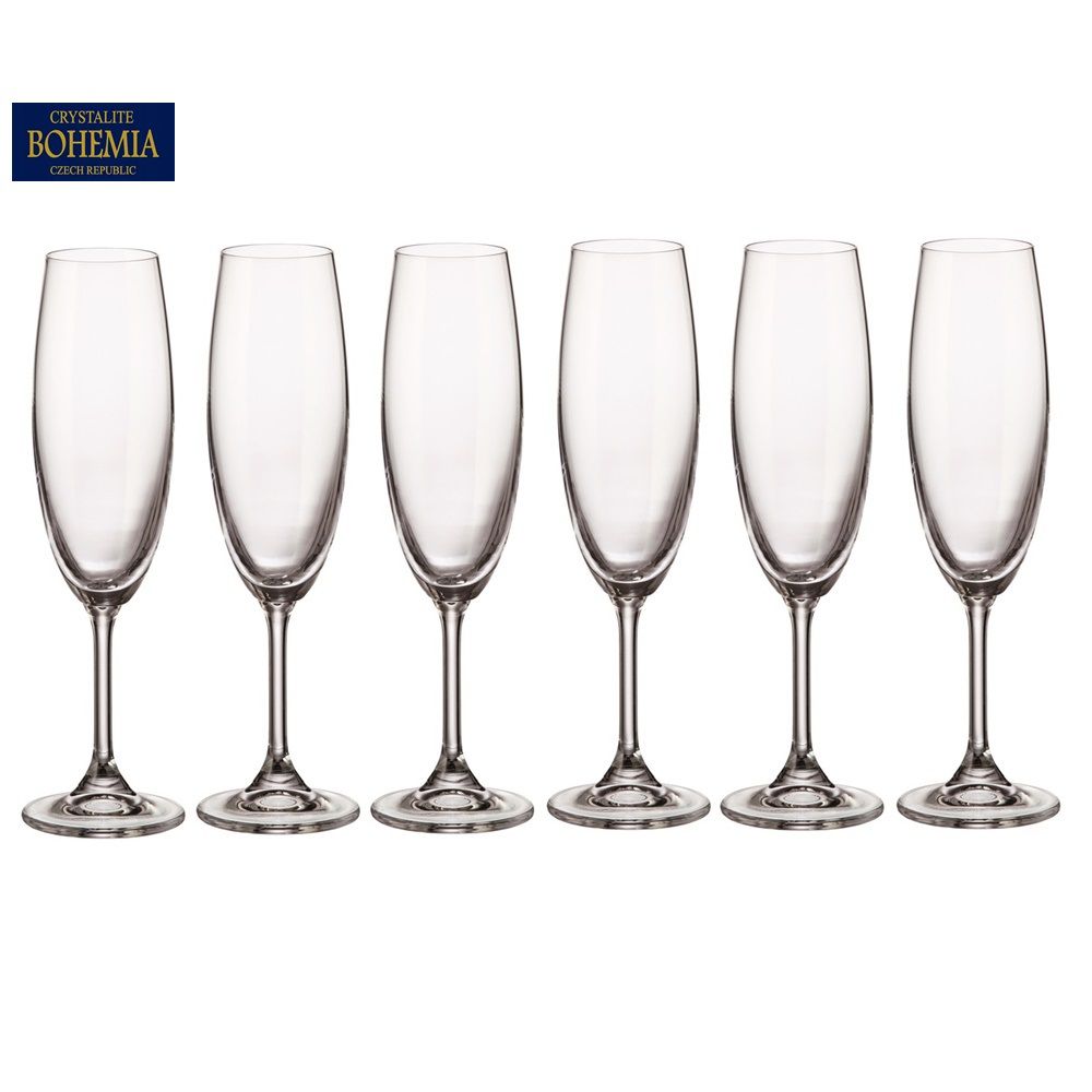 Kit 06 Taças Champagne 220ml Sylvia Cristal Titanium Bohemia