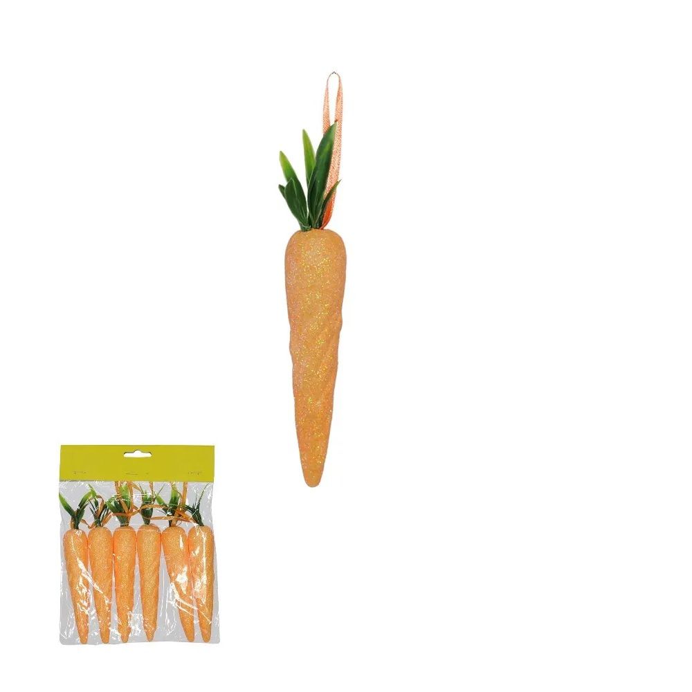 A Cenoura é confeccionado em Isopor com pintura, alcinha em tecido para pendurar e folhinhas em plástico.