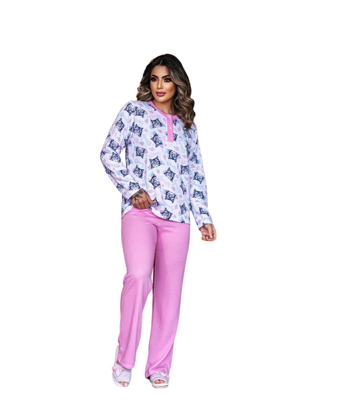 Pijama Feminino Moletim Punho de Gatinho - Pijamas Martins