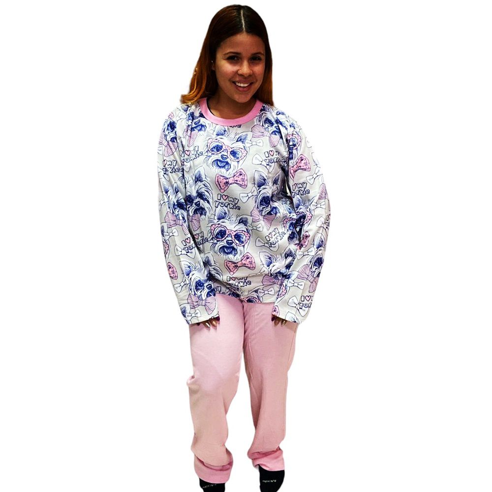 Pijama Feminino Moletim Manga Comprida Yorkshire com Óculos