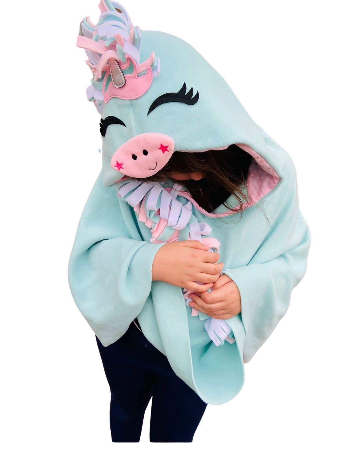 Poncho com Capuz forrado em tecido e fita para amarrar