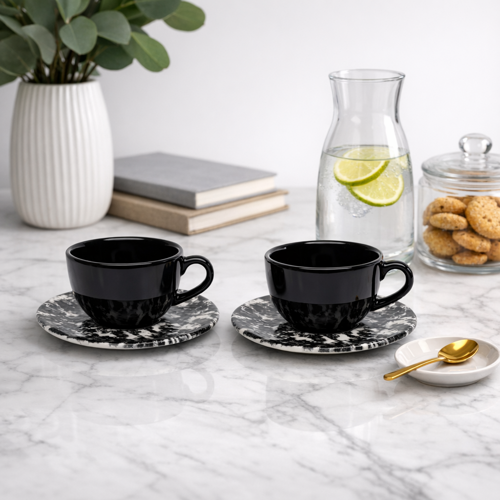 02 Xícaras de Chá Café com Leite, 200 ml, (A x C x L) 6 x 13 x 30 cm